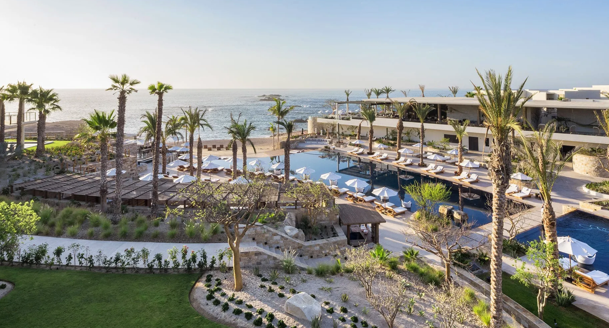 One of our favorite indulgences in Cabo? Resort-hopping for lunch, cocktails, or sunset dinners. Each luxury property has its own vibe—from modern desert zen to romantic hacienda elegance.